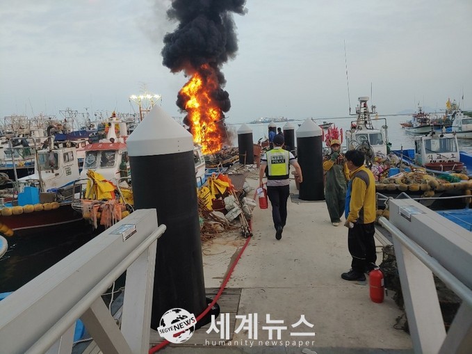 [세계뉴스 한차수 기자] 보령해양경찰서(서장 성대훈)는 9일 새벽 5시 30분경 보령시 대천항 소형어선 부두에 정박중인 A어선에서 원인미상의 폭발로 화재가 발생해 해양경찰·소방 등이 출동해 화재를 진화했다고 밝혔다.