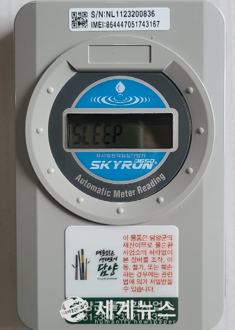 [세계뉴스 양경희 기자] 담양군은 스마트 관망정비 인프라 구축사업의 일환으로 사업비 24억 원을 투입해 연말까지 16,500세대에 무선 원격검침 단말기를 설치한다.