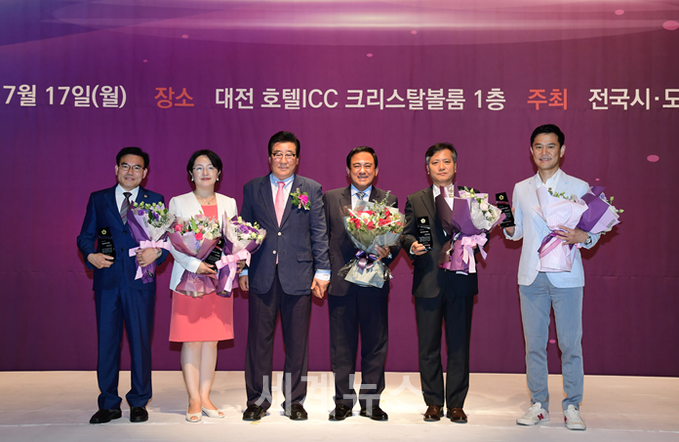 ▲ 지난 17일 전국시·도의회의장협의회가 주최한 ‘제4회 우수 의정대상’에서 수상한 (좌측부터) 서울시의회 장흥순 의원, 이혜경 의원, ?, 양준욱 의장, 신원철 의원, 서윤기 의원이 기념촬영을 하고 있다. © 세계뉴스 |