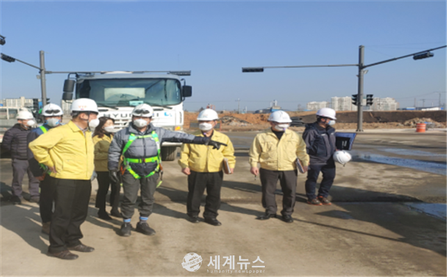 현장소장들에게 작업내용에 대해 설명을 듣고 ▲차량 출입시 세륜 세차 실시 ▲운반차량 덮개 설치 ▲공사장 주변 날림먼지 방지 살수시설 가동 ▲사업장 가동시간 단축 ▲근무자 건강보호용 마스크 착용 등 미세먼지 방지계획 이행여부를 꼼꼼히 확인했다.