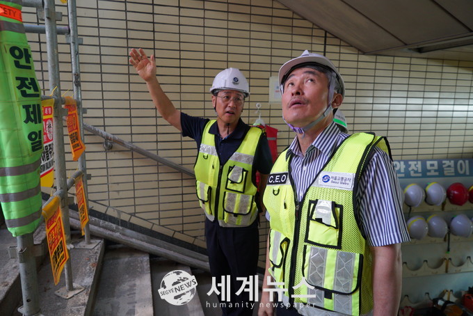 [세계뉴스 차성민 기자] 백호 서울교통공사 사장이 16일 5호선 광나루역 공사 현장을 방문하여 현장 안전 점검 활동을 펼쳤다.