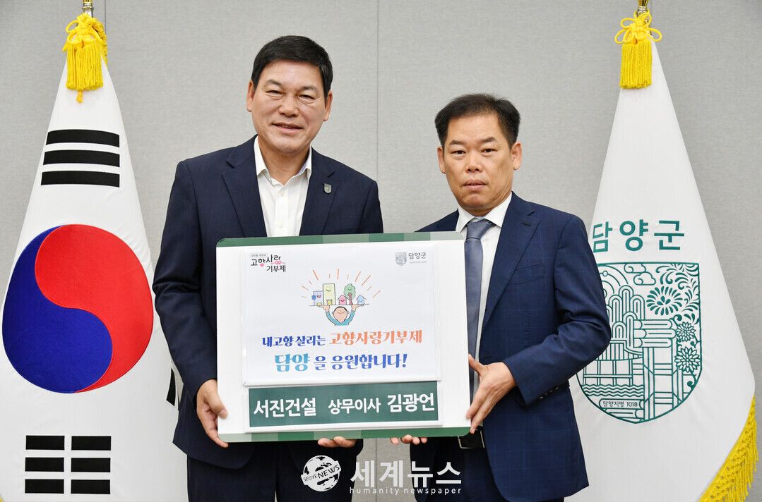 이번 기부는 ㈜서진건설그룹 신명진 회장과 김광언 상무이사가 고향사랑기부제의 취지에 깊이 공감하며 담양군의 지역 발전에 이바지하고자 결정한 것으로, 각각 500만 원씩 총 1,000만 원을 기탁했다.