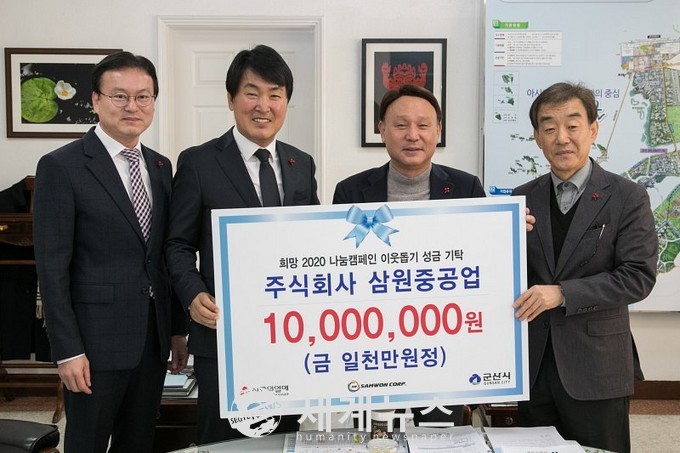 [세계뉴스 윤준필 기자]군산시에는 ‘희망2020나눔캠페인’ 기간 중인 19일 지역 내 기업으로부터 어려운 이웃을 위한 희망 나눔의 손길이 잇따르고 있다.