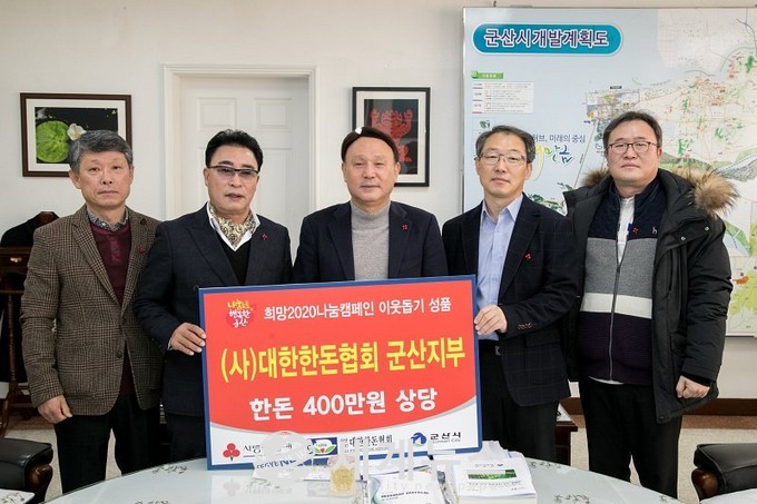 또한 대한한돈협회 군산지부(지부장 김현섭)에서 연말을 맞아 한돈 700kg(400만원 상당)을 기탁했다.