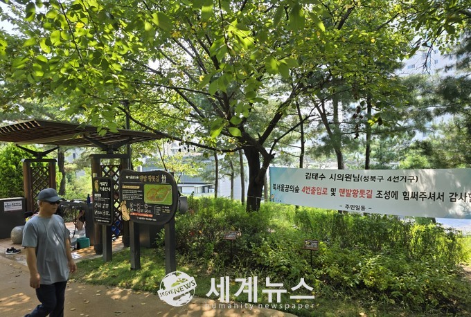 [세계뉴스 정서영 기자] 서울특별시의회 주택공간위원회 김태수 위원장(국민의힘, 성북구 제4선거구)은 최근 조성이 완료되어 개방한 북서울꿈의숲 맨발황톳길을 방문하여 현장을 점검하고 주민들의 이용 현황을 살펴보았다.