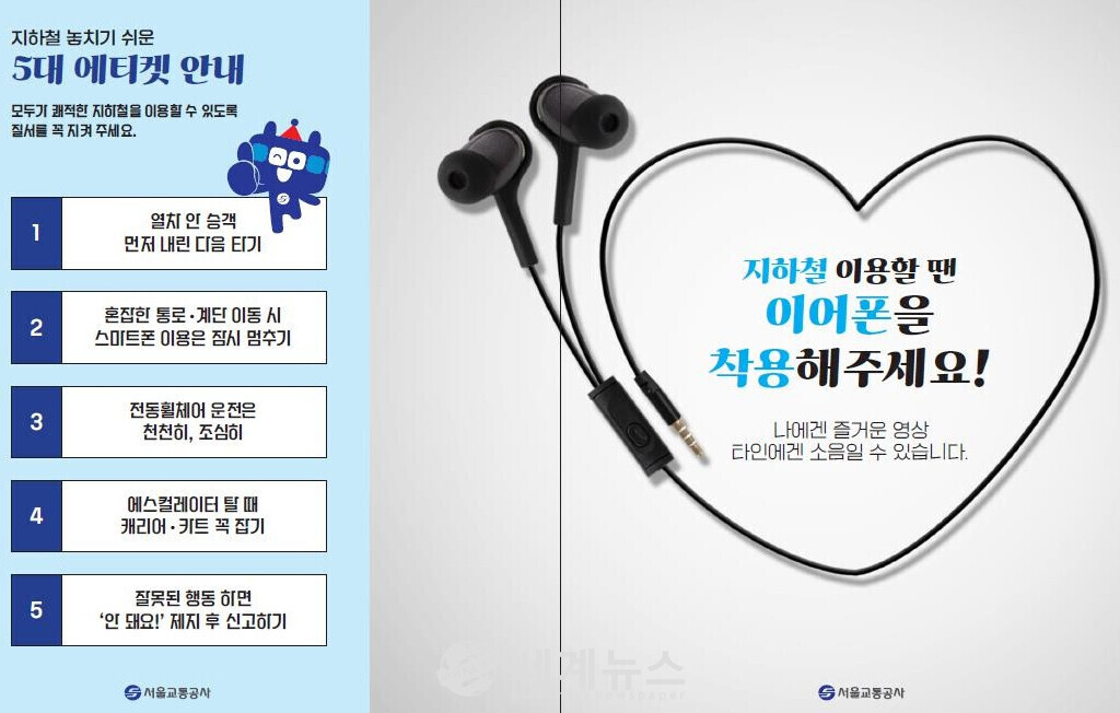 마해근 서울교통공사 영업본부장은 "지하철 내 휴대전화 이용 시 이어폰 착용으로 서로를 배려하는 문화를 만들어 나가자"고 강조했다.