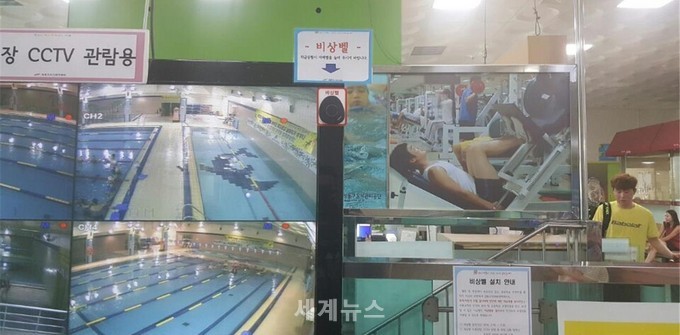 이 비상벨은 최근 잇따르고 있는 수영장 익사사고와 뇌진탕, 심정지 등의 응급상황에 대비하기 위해 설치됐다, 누르면 사이렌 소리와 함께 전광판에 발신위치 번호가 표시되어 신속하게 직원과 강사의 도움을 받을 수 있다.