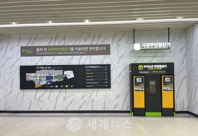 [세계뉴스 조홍식 기자] 서울시농수산식품공사(사장 문영표)는 가락몰 활성화 및 경쟁력 향상을 위해 가락몰 내 사전무인정산기의 위치를 주차장 출입구로 전면 이동하고 안내사인물을 설치해 시인성을 높여 고객 편의를 증대했다고 밝혔다.
