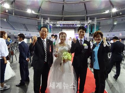 ▲ 합동결혼식에 참석한 김영한(오른쪽) 서울시의원. © 세계뉴스 |