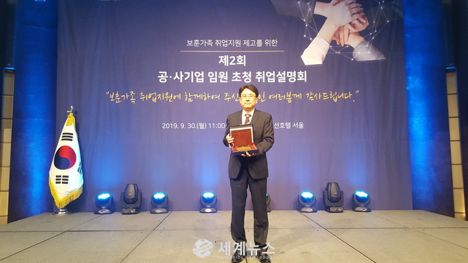 [세계뉴스 조홍식 기자] 성동구도시관리공단(이사장 김종수) 은 지난 9월 30일 서울시 중구 세종로 웨스턴조선호텔에서 개최된 “제2회 공·사기업 임원 초청 취업설명회”에서 국가보훈처(처장 박상득)로부터 감사패를 받았다.