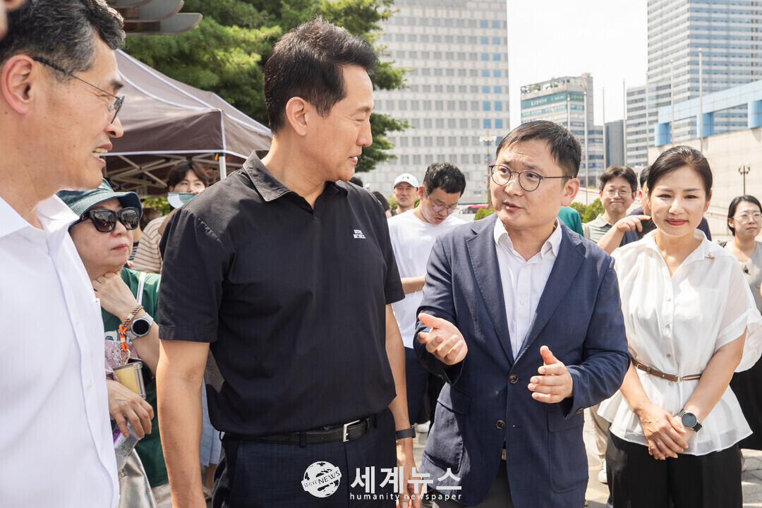 [세계뉴스 = 윤소라 기자] 서울특별시의회 허훈 의원과 이기재 양천구청장이 오세훈 서울시장과 함께 목동6단지 및 목동운동장·유수지 일대를 방문, 현장 점검 및 주민간담회를 통해 현장 의견을 청취했다.