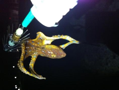 ‘파란고리문어류’는 10cm 내외의 작은 크기지만 복어류에 있는 ‘테트로도톡신’ 이라는 강력한 독을 지닌 맹독문어이다.