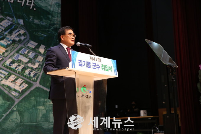 [세계뉴스 송하섭 기자] 김기웅 제47대 서천군수가 1일 서천 문예의전당 대강당에서 취임식을 갖고 민선8기 출발의 힘찬 첫 고동을 울렸다.