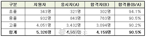 [세계뉴스 = 조홍식 기자] 서울시교육청은 29일 오전 10시에 2025년도 제2회 초·중·고등학교 졸업학력 검정고시 합격자를 발표했다. 이번 검정고시에는 4,596명이 응시했으며, 이 중 4,159명이 합격해 90.5%의 높은 합격률을 기록했다.