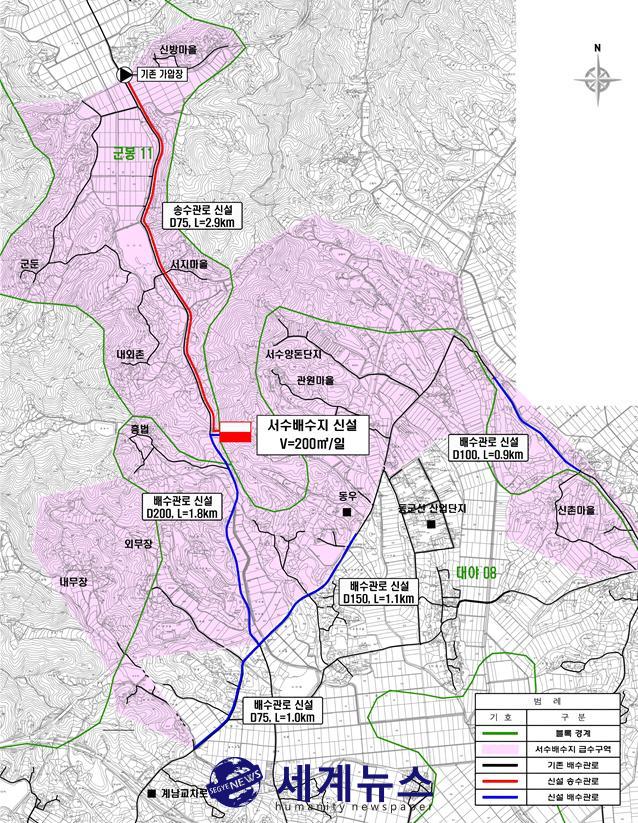 이번 서수배수지 신설 사업은 오는 2023년까지 사업비 총 28억4000만 원(균특 19억8800만 원, 시비 8억5200만 원)을 투입해 1일 200톤 규모의 배수지를 신설하고 7.7km의 송·배수관을 확장 설치한다.