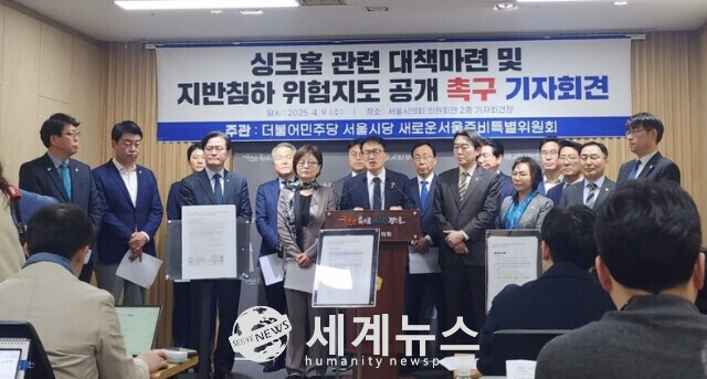 [세계뉴스 = 정서영 기자] 서울 강동구에서 발생한 대형 땅꺼짐(싱크홀) 사고와 관련해 더불어민주당 서울시당 새로운서울준비특별위원회(새서울특위)가 서울시에 강력한 대책 마련과 지반침하 안전지도의 공개를 촉구하고 나섰다.
