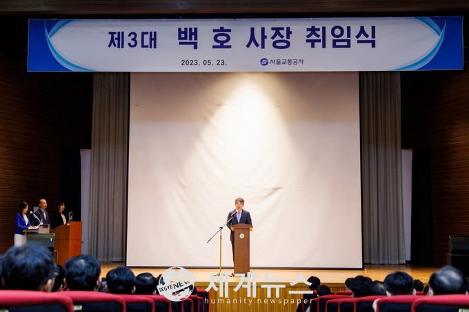 [세계뉴스 전승원 기자] 23일 서울시는 서울교통공사 신임 사장에 백호 전 서울시 도시교통실장을 임명했다. 백 신임 사장은 취임 일성으로 "서울 지하철이 곧 개통한 지 50년을 맞아 새로운 50년의 방향성을 제시해야 하는 시기에 사장 직위를 맡아 막중한 책임감을 느낀다"며 "그 무엇보다 중요한 안전 확보는 물론, 재정 위기 등 다양한 현안을 해결하면서 '천만 시민의 발, 신뢰받는 지하철'을 만들어가기 위해 최선을 다하겠다"고 말했다.