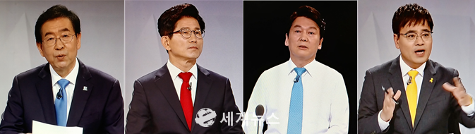 [세계뉴스] 조홍식 기자 = 서울시장 후보 토론회가 지난 30일 밤 KBS 초청으로 열린 가운데 4명의 후보가 나와 치열한 공방전을 벌였다.