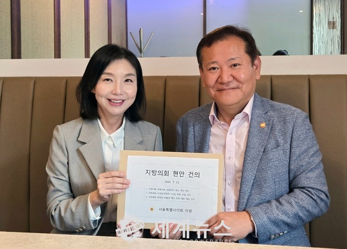 [세계뉴스 윤소라 기자] 최호정 서울특별시의회 의장은 지방의회 발전을 위한 정책 건의 등을 위해 22일 이상민 행정안전부 장관과 면담을 가졌다.