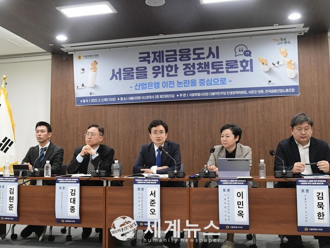 [세계뉴스 정서영 기자] 서울특별시의회 서준오 의원(더불어민주당, 노원4)은 2일 오전 서울특별시의회 의원회관에서 개최한 ‘국제금융도시 서울을 위한 정책토론회(산업은행 본점 부산 이전 논란을 중심으로)’에서 “국제금융도시 서울을 만들겠다는 오세훈 시장이 산업은행 이전 반대에 보다 적극으로 나서야 한다”고 요구했다.