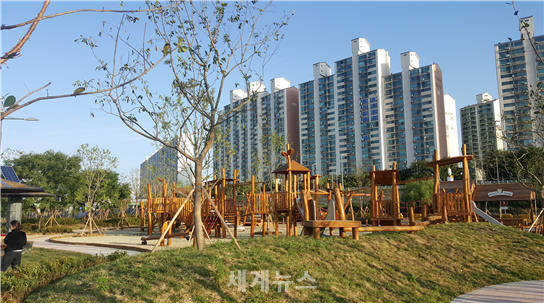 ▲ 이촌2동 한강공원 내 약 3,000㎡규모의 생태 어린이 놀이터를 조성하여 지역주민들과 시민들에게 개방했다. © 세계뉴스 |