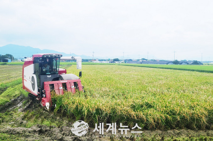 [세계뉴스 양경희 기자] 영산강 시원의 청정지역 담양군(군수 이병노)의 ‘대숲맑은 조기햅쌀’이 봉산면 삼지리 김덕수 씨 농가 재배 필지를 시작으로 본격적인 벼 베기에 들어갔다.