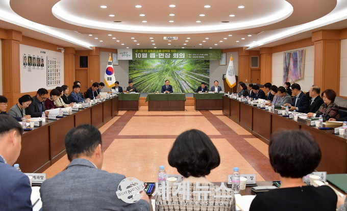 [세계뉴스 양경희 기자] 담양군(군수 이병노)은 지난 29일 담양군청 면앙정실에서 이병노 군수 주재로 간부공무원 및 읍면장이 참석한 가운데 주요 현안 사항 논의를 위한 10월 읍면장회의를 개최했다.