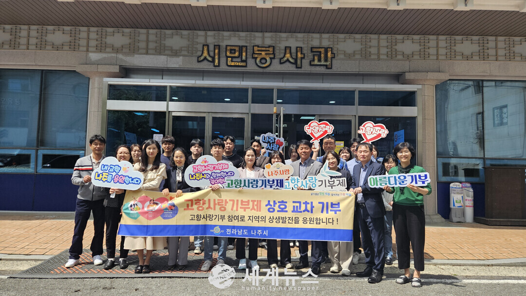 [세계뉴스 = 양경희 기자] 담양군 재무과와 나주시 시민봉사과 직원들이 24일 고향사랑기부금 상호기부에 동참하여 제도의 성공적인 정착과 서로의 지역발전을 응원했다.