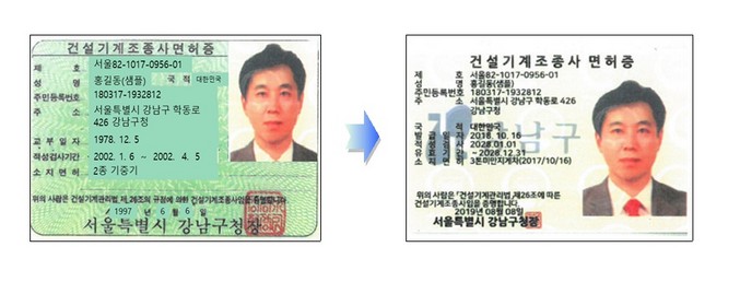 시스템은 건설기계조종사·수렵면허증을 자동차 운전면허증과 동일한 PVC 플라스틱 카드로 발급하는 것으로 30분 이상 소요됐던 대기시간이 5분으로 대폭 단축된다.