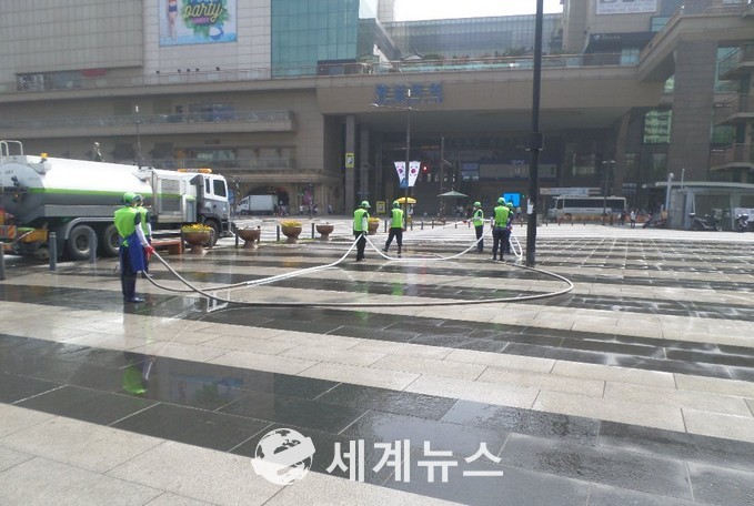 [세계뉴스] 조홍식 기자 = 성동구도시관리공단은 구민의 건강과 쾌적한 도시 환경을 조성하고자 폭염 및 미세먼지 발생 시 ‘보도 및 시설물 물청소 탄력적 운영’한다.