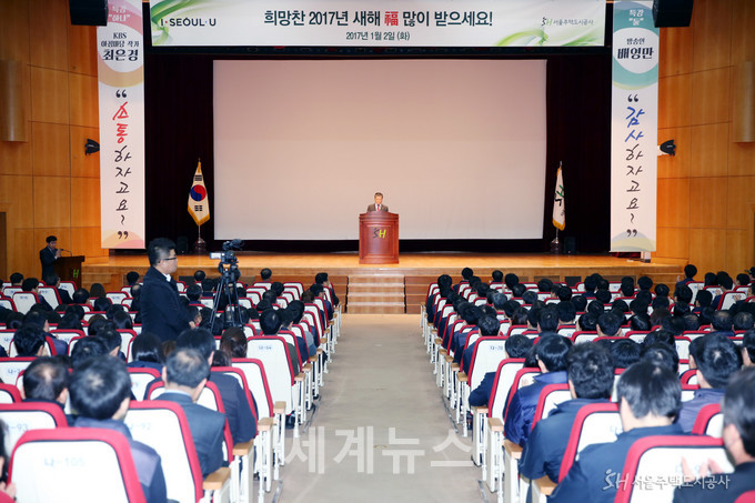 ▲ 서울주택도시공사 시무식. 변창흠 서울주택도시공사 사장은 2일 2017년 시무식을 갖고 “우리가 설계한 다양한 모델들과 사업들이 표준이 되도록 제도화해 나가자”고 말했다. © 세계뉴스 |