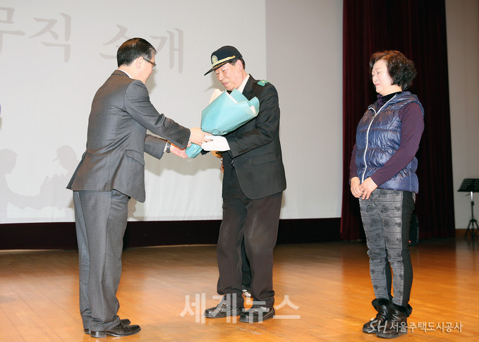 서울주택도시공사는 이날 오후 서울 강남구 소재 본사 대강당에서 거행된 2017년도 시무식에서 서울시의 ‘비정규직 고용개선대책’에 따라 직접 고용(2017.1.1.자)된 공무직 청소·경비·식당근로자 35명을 축하·격려하는 의미 있는 자리를 가졌다.