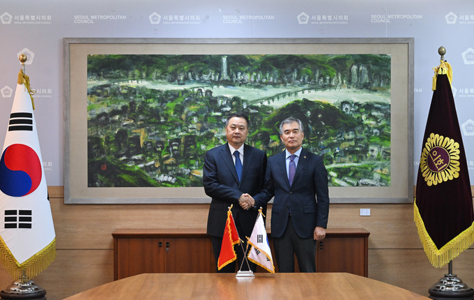 [세계뉴스 윤소라 기자] 서울특별시의회 김현기 의장은 30일 중국 베이징시의회 상무위원회 리잉진 부주임을 면담하고 양 의회 간 교류협력을 논의했다.