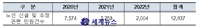 ▲ 최근 3년간 버스노선 신설 및 조정 관련 민원 현황. |