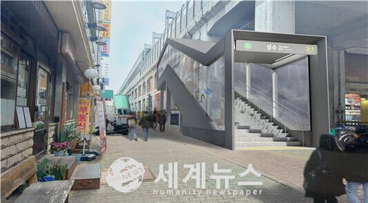 [세계뉴스 = 차성민 기자] 서울교통공사는 성수역 출입구 혼잡도를 개선하기 위해 3번 출입구 전면에 새로운 계단을 추가 신설한다고 4일 발표했다.