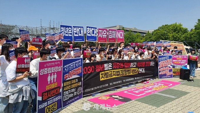 차별금지법의 문제점은 이 짧은 시간에는 일일이 거론할 수조차 없을 만큼 많고 그 정도도 심각하다. 차별금지법은 ‘여성차별법’이며 ‘노력배신법’이고, ‘아닥법’이며 ‘범죄조장법’이고 ‘국민손해법’이다. 차별금지법의 폐단과 심각한 사회 갈등을 보여주는 무수한 해외 사례가 있다. 우리 2030청년들은 이처럼 자유의 가치와 상식에 반하는 차별금지법의 제정시도를 강력히 규탄하며, 현재 발의되어 있는 평등법의 완전 폐기와 국회의원들의 깊은 성찰을 요구하는 바이다.