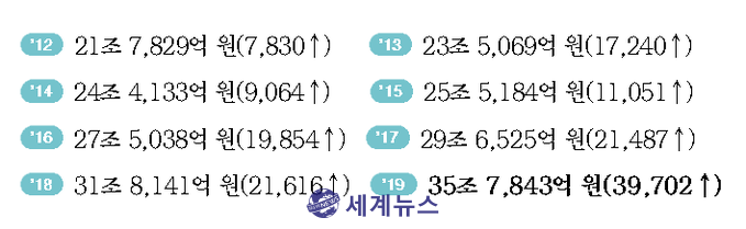 ▲ 서울시 총 예산 규모 (’12년 ~ ’19년). |