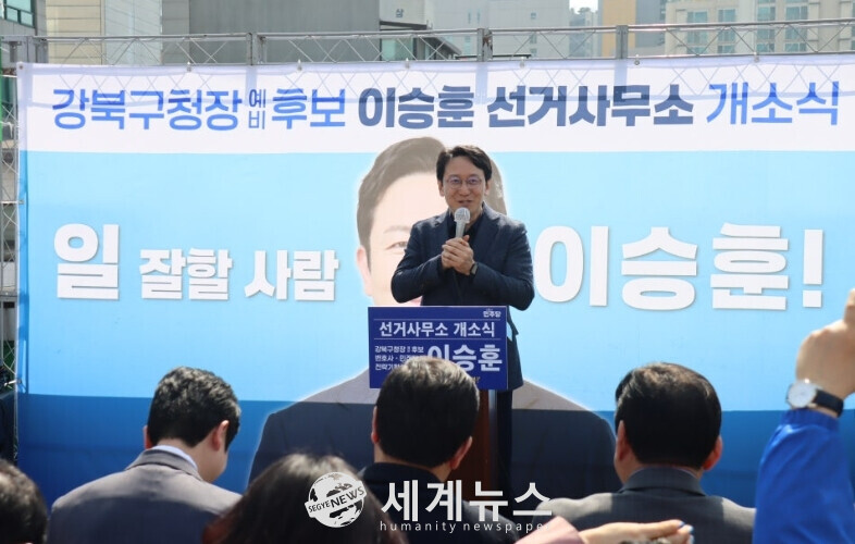 [세계뉴스 = 전승원 기자] 6·3 지방선거 서울 강북구청장에 출마한 이승훈 더불어민주당 예비후보가 28일 오후 2시 자신의 변호사 사무실 3층 옥상에서 선거사무소 개소식을 열고 내외 귀빈과 지역 주민들을 초청했다.