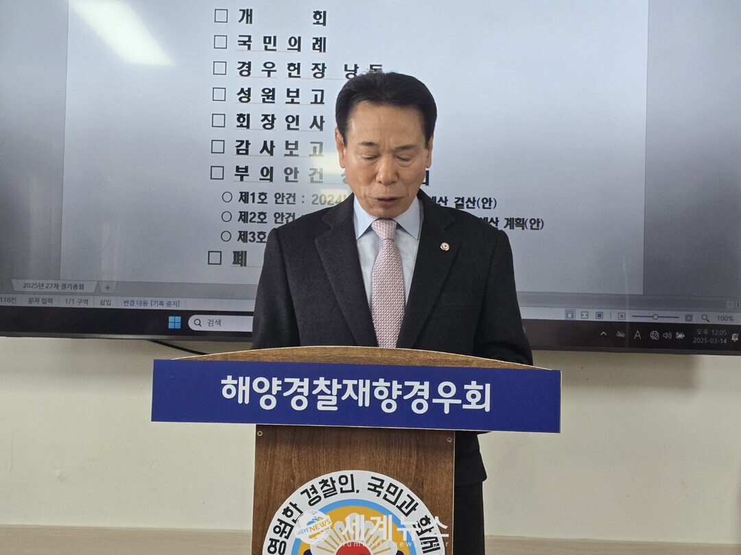 [세계뉴스 = 윤준필 기자] 군산해양경찰재향경우회가 2025년도 제27차 정기 총회를 개최했다. 이번 총회는 14일에 열렸으며, 총 230여 명의 회원 중 정회원 70여 명이 참석해 자리를 빛냈다.