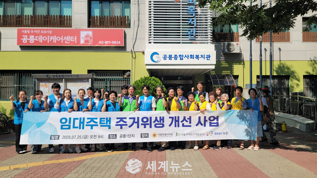 [세계뉴스 = 윤소라 기자] 서울특별시의회 오금란 의원(더불어민주당ㆍ노원2)이 25일 노원구 SH 공릉1단지 아파트에서 바퀴벌레 등 위해해충 박멸과 세균 방제를 위한 특별소독 및 청소를 실시했다.