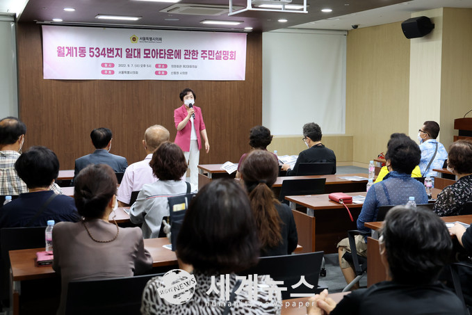 [세계뉴스 정서영 기자] 서울특별시의회 주택균형개발위원회 신동원 의원(국민의힘, 노원구 제1선거구)은 7일 오후 5시 서울특별시의회 의원회관 제2대회의실에서 월계1동 534번지 모아타운에 관한 주민설명회를 개최했다.