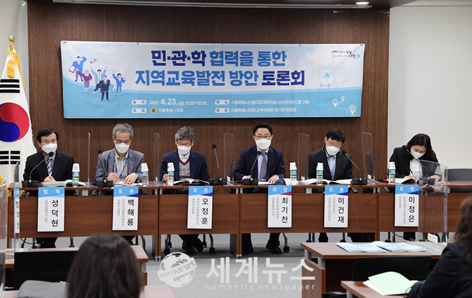 [세계뉴스 윤소라 기자] ‘민·관·학 협력을 통한 지역교육발전 방안 토론회’가 23일 오전11시30분 서울시의회 의원회관 제2대회의실에서 열렸다.