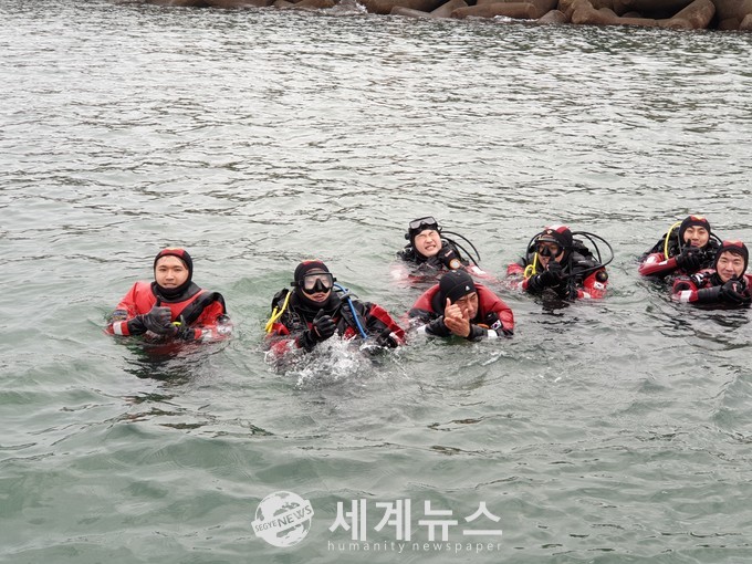 [세계뉴스 한차수 기자] 부안해양경찰서(서장 김동진)는 부안군 왕등도 일원에서 부안해경 구조대 경찰관 10여명이 참석한 가운데 해상 재난이나 조난사고 발생 시 신속한 현장 초동조치 능력 향상과 심해 구조능력을 강화하기 위한 고강도 심해 잠수 훈련을 지속적으로 실시한다고 18일 밝혔다.