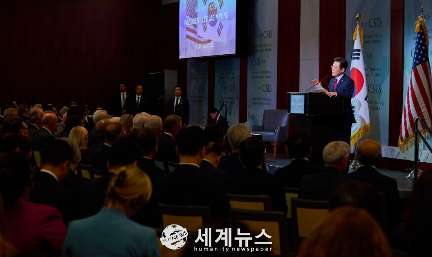 [세계뉴스 = 정서영 기자] 이재명 대통령은 25일(현지시간) 트럼프 대통령과 정상회담 후 워싱턴DC 한 호텔에서 열린 한미 경제인들이 모인 비즈니스 라운드테이블(제조업 르네상스 파트너십)에 참석했다.