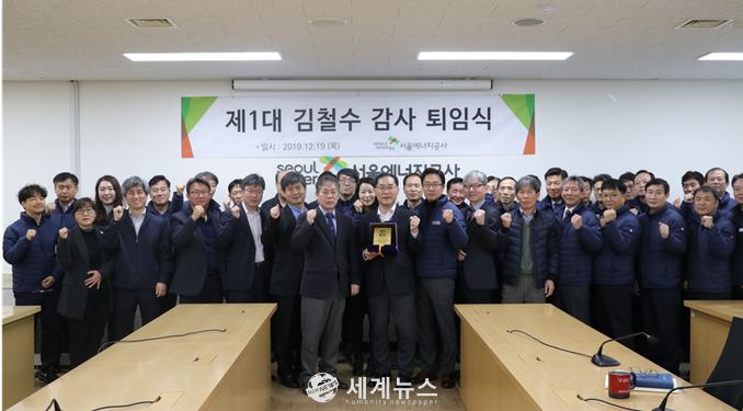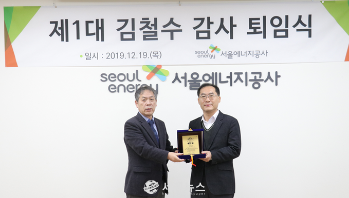 [세계뉴스 조홍식 기자] 서울에너지공사(사장 박진섭)는 지난 19일 서울 양천구 목동 본사 대회의실에서 김철수 상임감사 퇴임식을 진행했다.