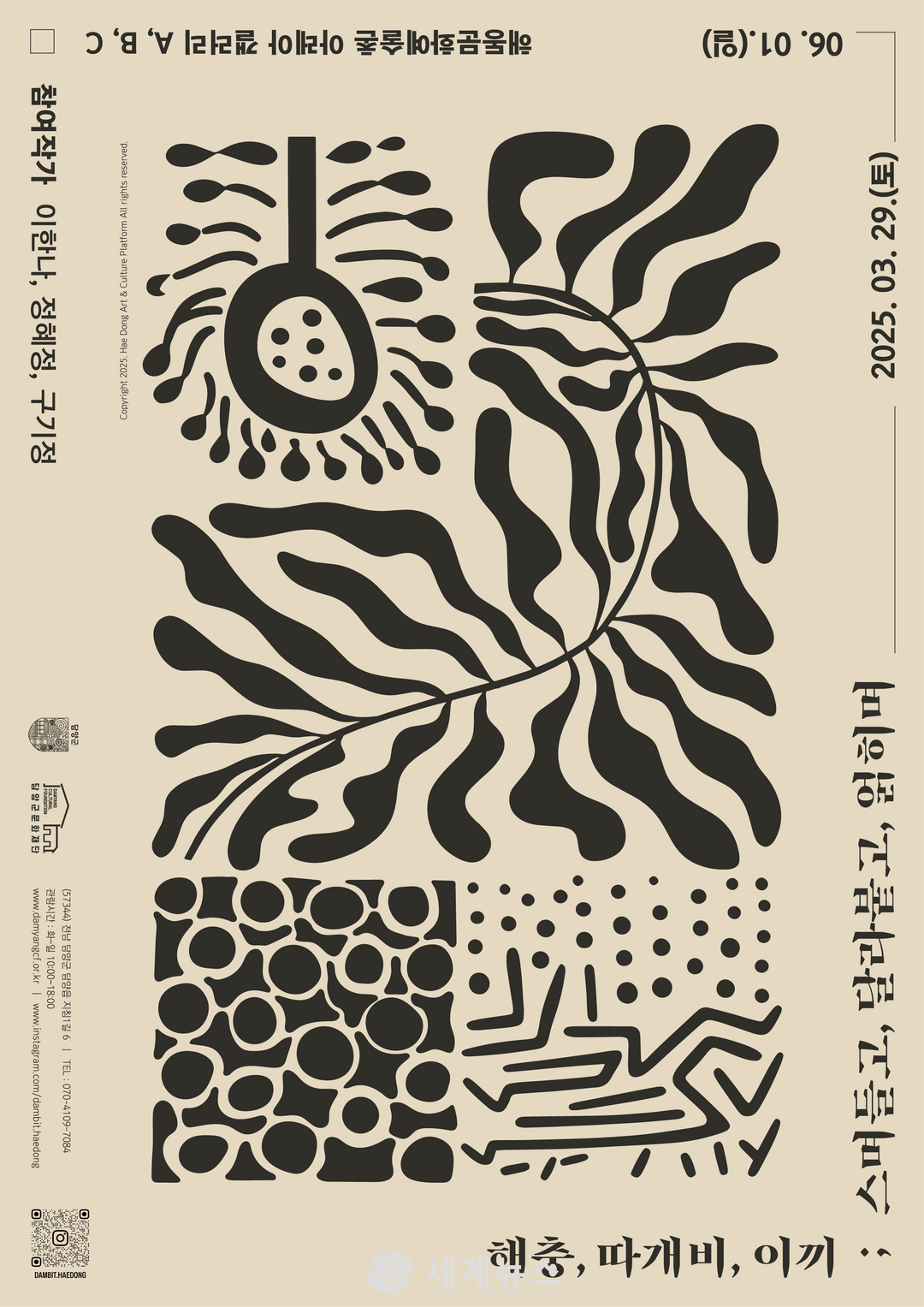 기획전시 ‘해충, 따개비, 이끼 : 스며들고, 달라붙고, 얽히며’ 전시는 지난달 29일 개막해 6월 1일까지 해동문화예술촌 아레아 갤러리에서 운영되며, 이한나·정혜정·구기정 작가가 참여해 인간과 비인간, 기술과 생태를 분리하는 인간 중심적인 사고에서 벗어나 상호 연결된 존재로 바라보는 새로운 시각을 제안한다.