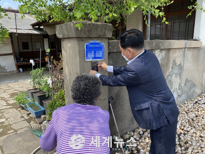 [세계뉴스 송하섭 기자] 서천군 장항읍이 지난 8일 국가유공자에 대한 사회적 예우 분위기를 조성하고 국가유공자의 자긍심을 높일 수 있도록 국가유공자와 유족 자택을 방문해 ‘국가유공자 명패 달아드리기’ 사업을 추진했다.