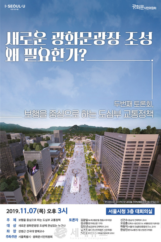 - 7일 광화문광장시민위‧시민단체‧전문가 2차토론회…'보행중심 도심부 교통정책 토론'