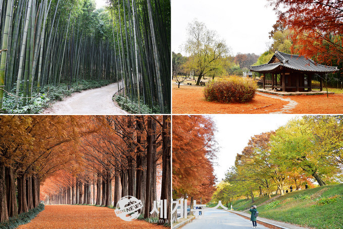▲ (시계방향) 죽녹원, 죽녹원 후문, 관방제림, 메타세퀘이아길. |