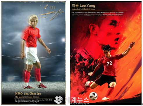 ▲ 전 현직 축구 국가대표 선수인 이천수와 이용의 NFT. (골든골 GDG 제공) |